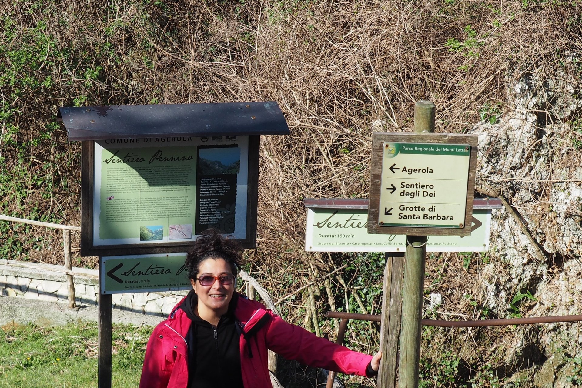 Mit einem unvergleichlich schönen Blick aufs Meer und in Richtung Capri beginnt die Wanderung in einem Ortsteil von Agerola “Bomerano”, 632 Meter über dem Meeresspiegel gelegen. Der Wanderweg führt unter der Grotta del Biscotto entlang, wo man neben der besonderen geologischen Beschaffenheit des Felsens auch im Felsen eingebettete jahrhundertealte Häuser bewundern kann. Nach dem Colle Serra öffnet sich ein phantastischer Panoramablick auf die Inseln "Li Galli" und zur Halbinsel von Sorrent mit Capri im Hintergrund. Weiter entlang des Pfades kommen Sie vorbei an „Li Cannati“ und Nocella (440m), oberhalb des Ortes Positano. Der gesamte Wanderweg wird auf langen Strecken von steilen Abhängen gesäumt und führt schließlich durch ein Waldstück bis kurz vor Nocella. Von dort aus gelangen Sie auf einen asphaltierten Wanderweg und schließlich ein Stück auf der Landstraße weiter bis nach Montepertuso, wo Sie einen langen Treppenweg erreichen, der Sie nach Positano führt. Sie können den Spaziergang fortsetzen bis ins Dorfzentrum und an den Strand „spiaggia grande“. Es ist möglich, den Wanderweg abzukürzen und den Weg erst im Ort Praiano zu beginnen. Der Ort Praiano organisiert im Frühjahr und Herbst Konzerte auf dem Sentiero degli Dei.